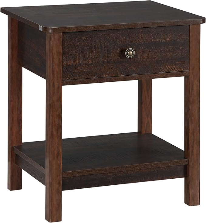 - Storage Space: This side table with storage has 1 drawer to store small personal items and open bottom shelf for books and top shelf for alarms, photos or plants.