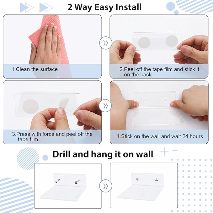 - 【2 Methods to Install】: There are two available ways to hang this small floating shelf with strips or screws. No tools required. Such easy installation can be done in a second.
