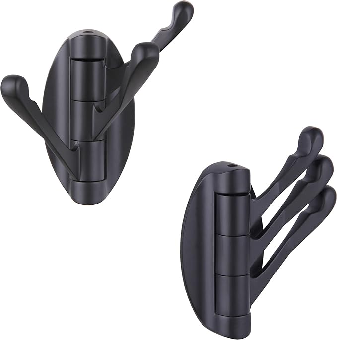 Angle Simple Towel Hook Matte Black 2 PCS, Metal Swivel Folding Robe Hook, Hand Towel Holder, Heavy Duty Clothes Hanger for Bathroom RV Wall Mount