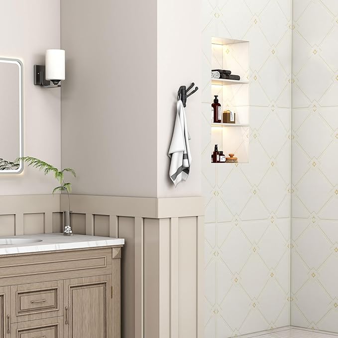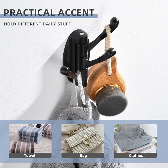 - EFFICIENT STORAGE SOLUTION: 3 arms utility hooks give ability to organize more stuff for daily convenience, you could use for holding robes, towels, bags, shower needs, kitchen tools, etc