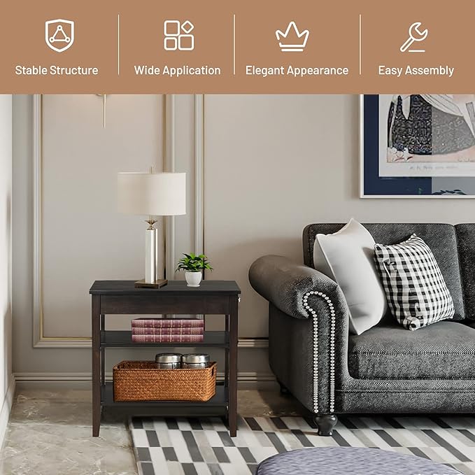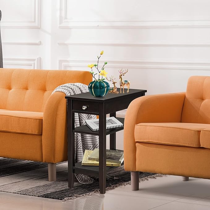 - [Various Storage Space] 2 tier storage shelves of this side table bring much convenience to store items in different categories. The drawer of this end table with knob offers with privacy storage space. And the solid tabletop provides space for laptops or other daily necessities within reach.
