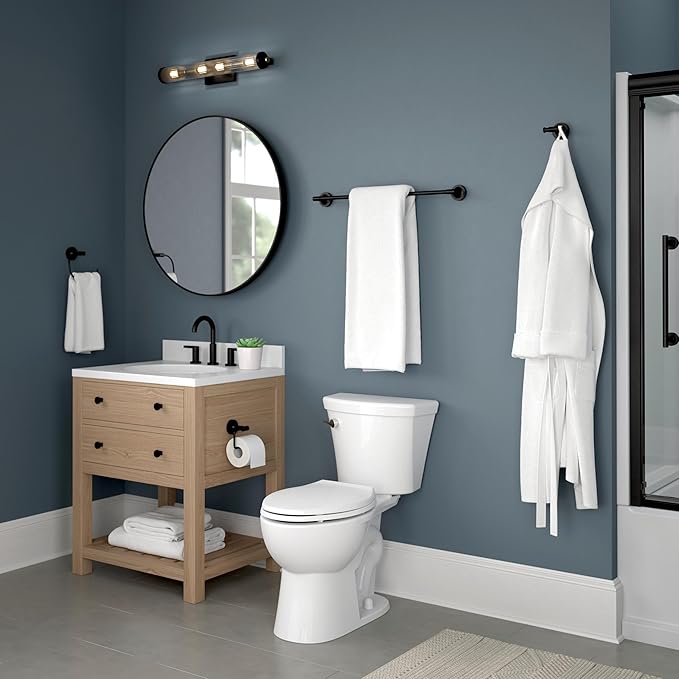 - BATH HARDWARE: Matte black double towel hook for the bathroom