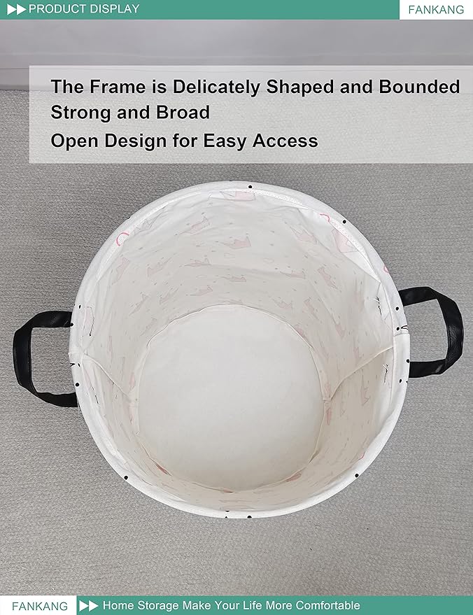 FANKANG Storage Basket, Nursery Hamper Canvas Laundry Basket Foldable with Waterproof PE Coating Large Storage Baskets for Kids Boys and Girls, Office, Bedroom, Clothes,Toys(pink crowns)