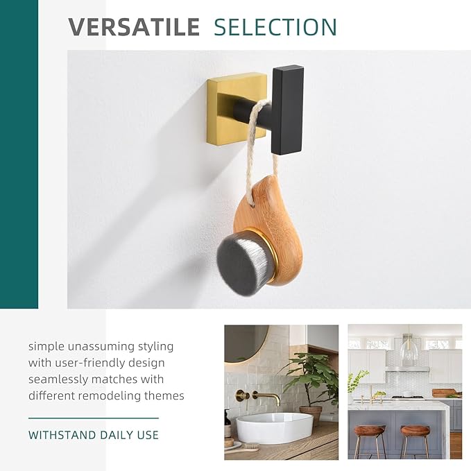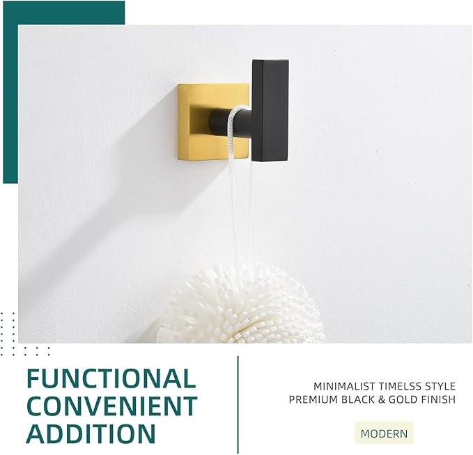 Angle Simple Towel Hook Black & Gold, Stainless Steel Bathroom Towel Holder, Robe Hook, Kitchen Towel Hanger, Wall Mount