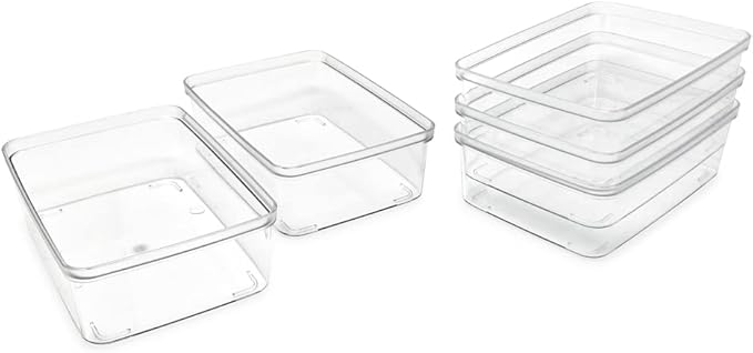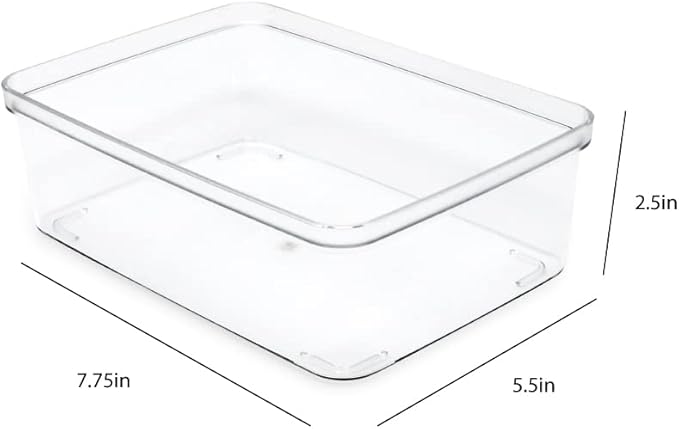 - CLEAR DESIGN: Staying organized is easy with these modern, clear plastic bins. The rounded edges make it comfortable to hold and carry. The transparent design of each bin enables you to quickly see what’s stored in each container; ideal for when you’re on-the-go. These modern bins are designed to blend into the décor of any room while clearing up the mess on your desk and tabletops. [Dimensions of each bin: 5.5” L x 7.75” W x 2.5” H]