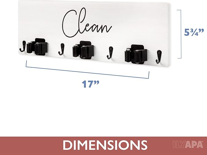 - MADE WITH REAL WOOD - Ilyapa broom and mop organizer wall hanging is crafted with beautiful white wood for an elegant modern look.