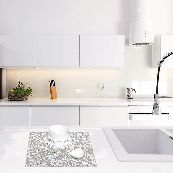 - [Protects countertops]: Use drying mats to keep your counter dry. The mat has good heat insulation, can protects your counters by providing a protection layer when placed under a dish rack, pots, pans, dishware