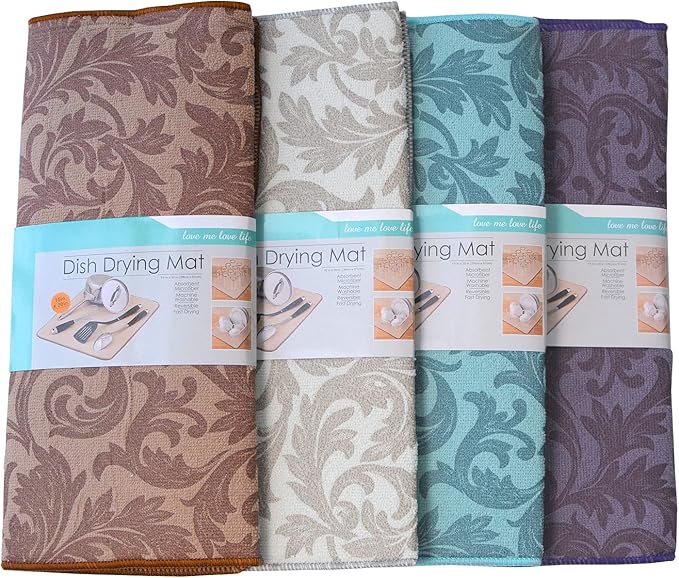 Dish Drying Mat For Kitchen Counter,4 Pack,Large Size 20"X15",Ultra Absorbent Microfiber Drying Mat,Dishes Drainer Pad (4)