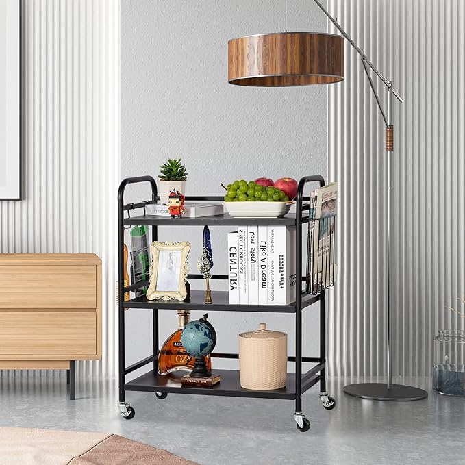 HDANI 3 Tier Metal Rolling Utility Cart,High Capacity Multi Purpose Heavy Duty Cart,for Office,Kitchen,Living Room,Bedroom,Etc.(Black)…