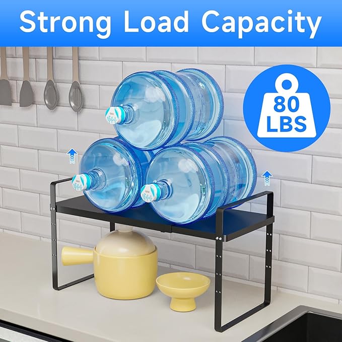 - 【Flexible & Stackable】 This cabinet shelf is expandable and stackable, allowing you to adjust the width and height to suit your needs. The width can be extended from 17 inches to 27 inches, and multiple shelves can be stacked together to create multiple levels of storage space.