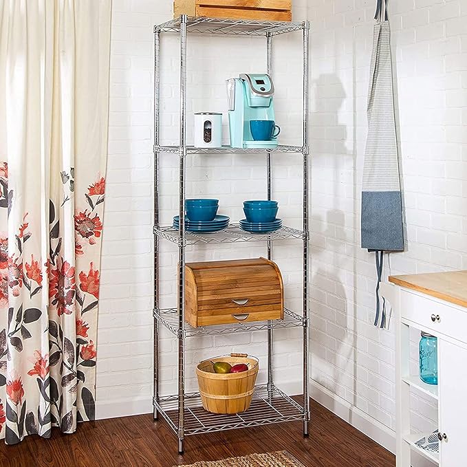 5 Tier Wire Shelving Unit, Height Adjustable Wire Shelves with NSF Certified, Narrow Metal Storage Rack Shelf Unit for Kitchen, Laundry, Bathroom, Pantry, Closet (18"D x 21.5"W x 71"H, Chrome)