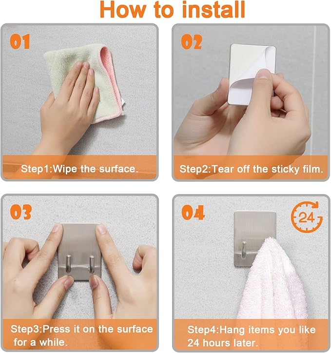 - Excellent Material: High-quality 304 stainless steel material enables this sticky hook to be waterproof, anti-corrosion, and anti-rust for long-term use. Polished smooth surface, making the wall hooks very easy to clean.