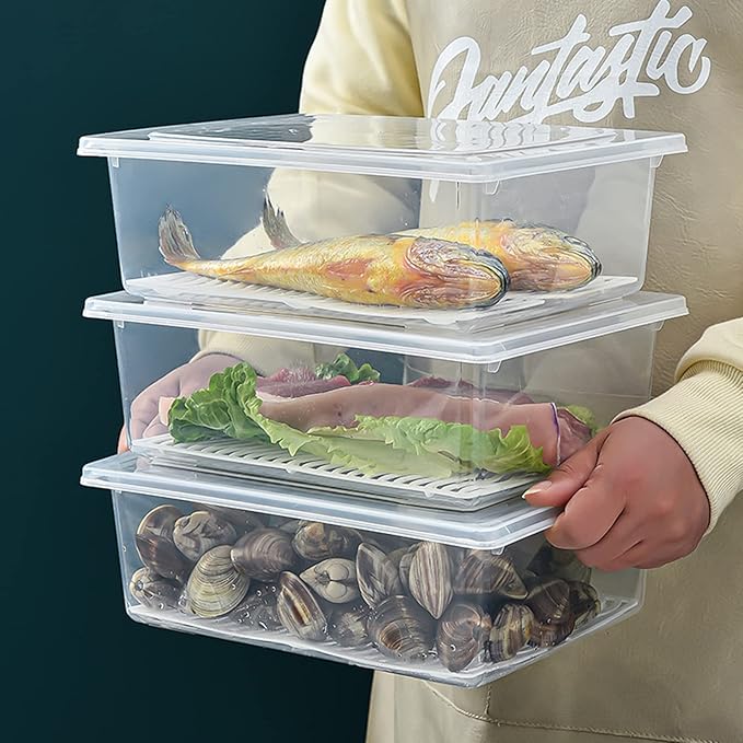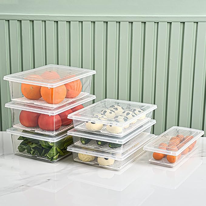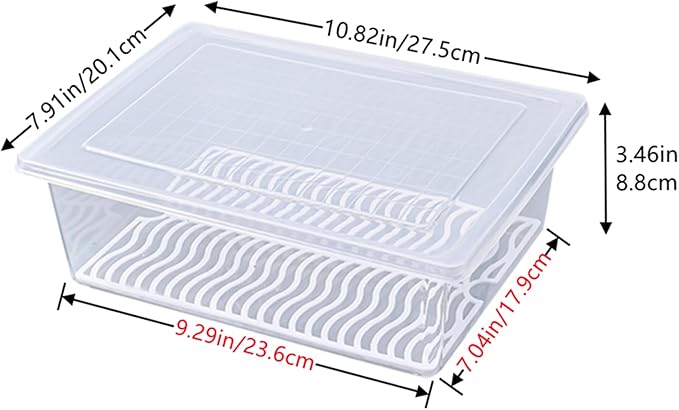 - Multiple Uses:Fridge Organizer Case with Removable Drain Plate, Tray to Keep Fruits, Vegetables, Meat, Fish etc. Out of The Drippings
