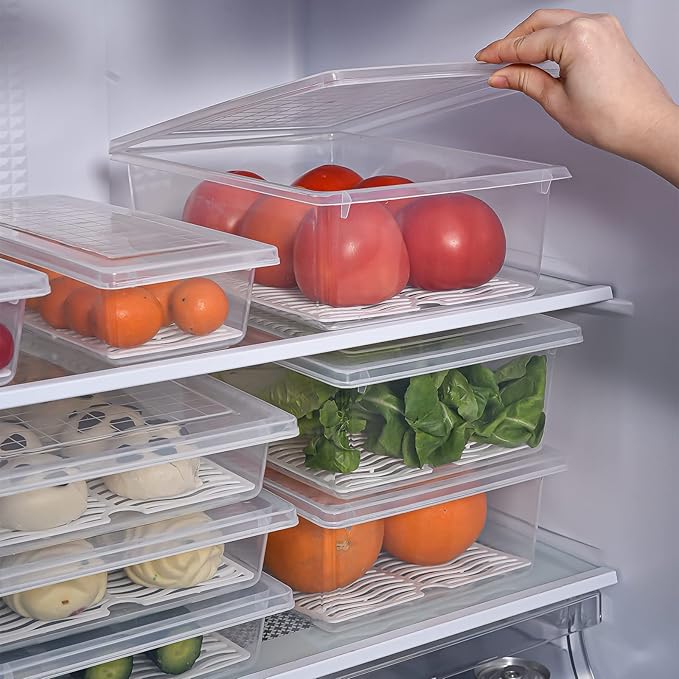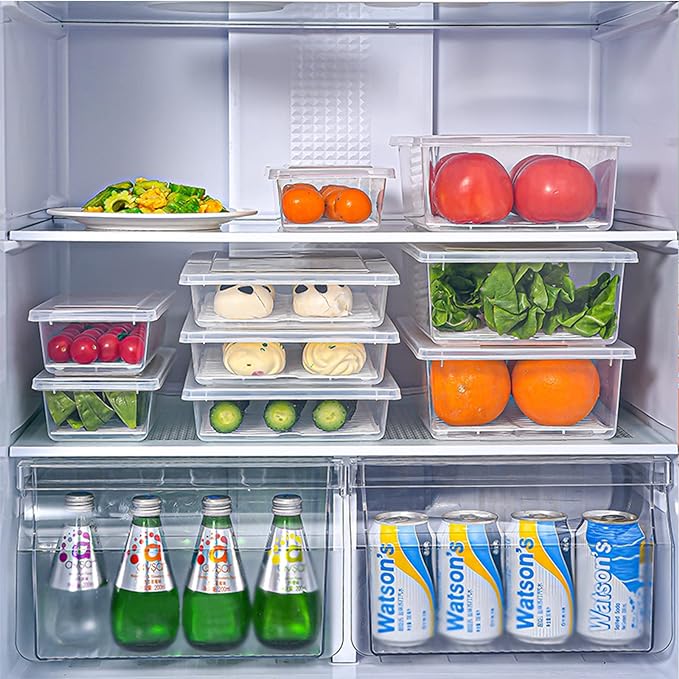 - Keep Your Fridge Organized:Our refrigerator plastic bins with lids are made to provide you with a convenient, hygienic and cost-friendly way to add more structure to the way you store your meats and groceries while helping reduce the clutter to organize all your fridge essentials the easy way