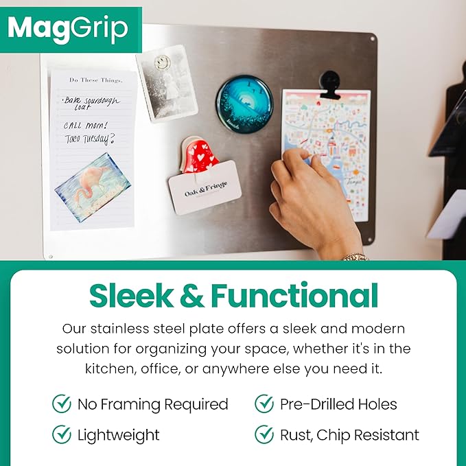 - Use Anywhere – Quickly turn any surface into a magnet board with this Stainless Steel Plate. The metal plate is easy to mount on walls, under your kitchen cabinets, on the inside or the side of cabinets and pantry spaces. Use it anywhere you need a magnetic surface!