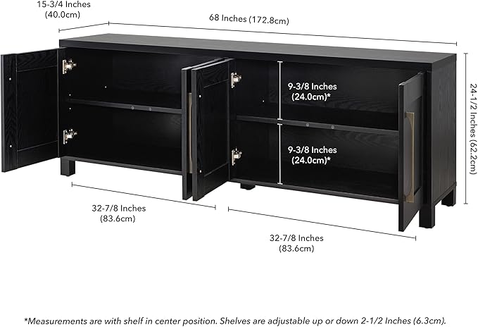 - A transitional design accommodates TVs up to 75" for your entertaining space.