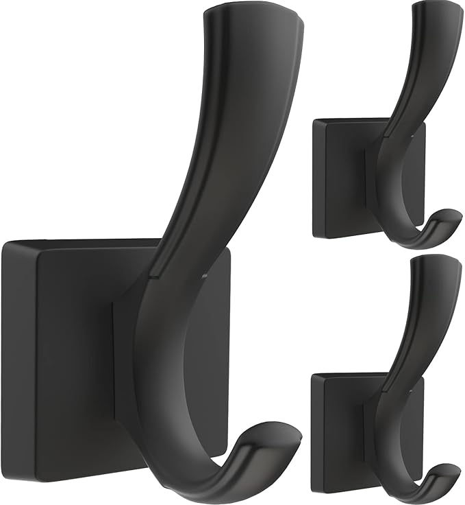 3 Pack Black Towel Hooks, Towels Robe Holder for Bathroom Coat Hooks for Wall Hanging Key Hat Backpack (3 Pack, Black)