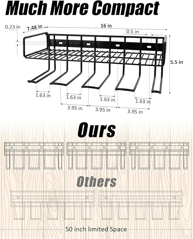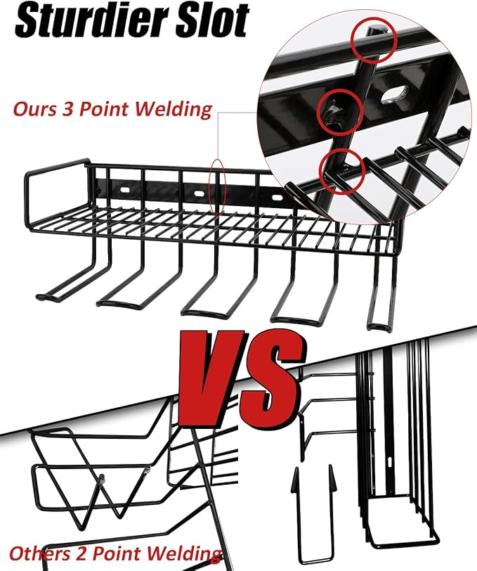 - [Sturdier Slots] By updating with 3 point welding (others just 2 point welding), this tools organizer will help your tool rack's slots much sturdy. Preventing drill holder wall mount won't be broke and bent easily, which can protect your power tools.