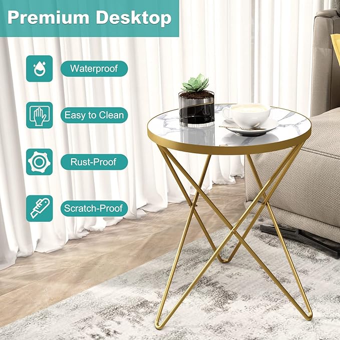 - 【Classic Modern Design】 Round end table has modern furniture aesthetics design with gold metal frame and elegantly circular table top. With all stylish elements combined, this table will bring fashion and modern to your house.