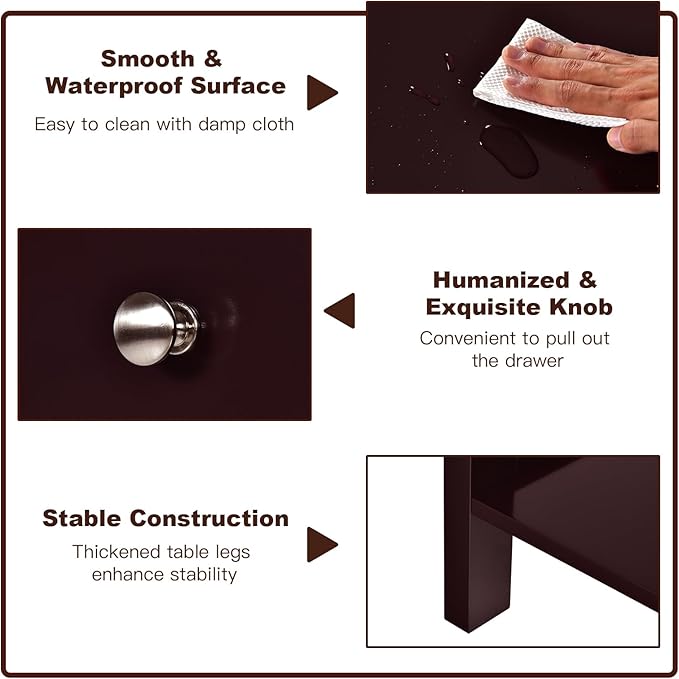 - 『Versatile Use & Handy Details』Depending on your needs, you can use this table as a nightstand in the bedroom, a sofa table in the living room or a display cabinet in the hallway. In addition, the drawer is easy to pull out with the tiny and practical knob.