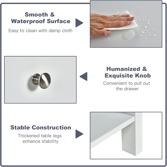 - 『Versatile Use & Handy Details』Depending on your needs, you can use this table as a nightstand in the bedroom, a sofa table in the living room or a display cabinet in the hallway. In addition, the drawer is easy to pull out with the tiny and practical knob.