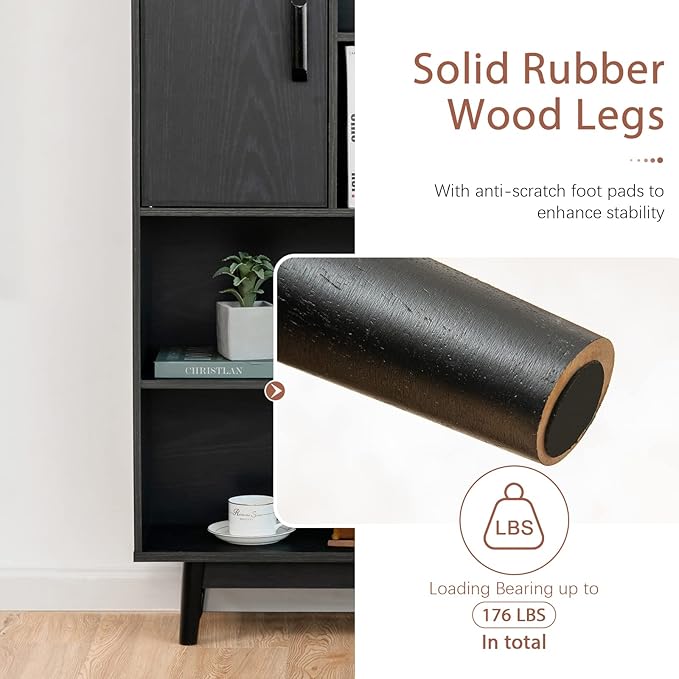 - Bring into Good Style: Our floor cabinet sets up doors and shelves in an irregular yet harmonious way to bring your interior unique furniture. This side storage cabinet with rubber wood legs will seamlessly blend into your living room, study, and complement well with existing decorations.