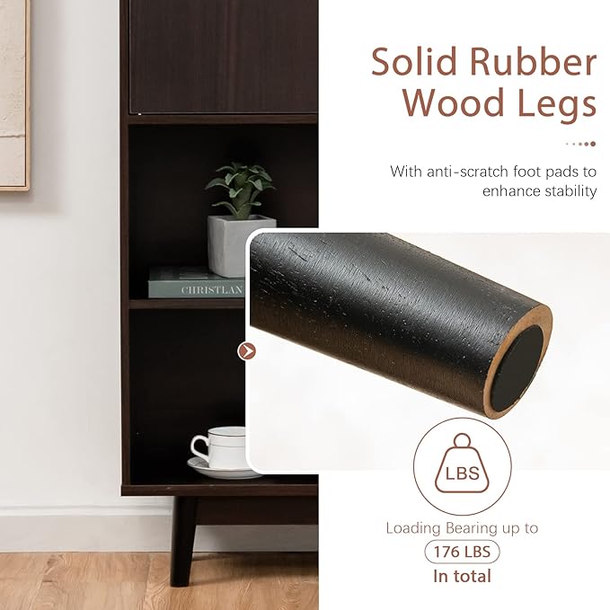 - Stable and Safe Design: Resting on solid rubberwood legs with anti-scratch foot pads, this 4-tier bookshelf with doors and shelves stands stable and balanced with a high loading bearing capacity. The anti-tipping devices firmly mount the bookshelf against walls to prevent accidental falling and add safety for the family.