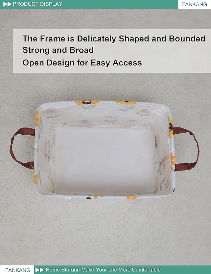 FANKANG Storage Bins, Nursery Hamper Canvas Laundry Basket Foldable with Waterproof PE Coating Large Storage Baskets for Kids Boys and Girls, Office, Bedroom, Clothes,Toys(Rec-Sunflower)