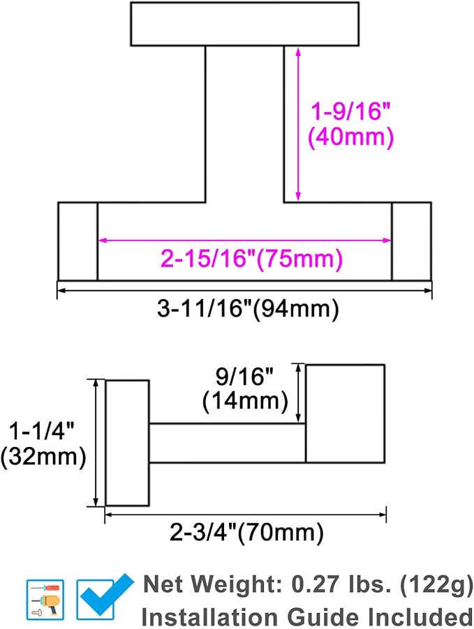 - FUNCTIONAL & USER-FRIENDLY: distance of 2-15/16"(75mm) between 2 hooks helps spread and dry out towels, say goodbye to messy crowded look, 1-9/16"(40mm) depth of the hook and base for wider items
