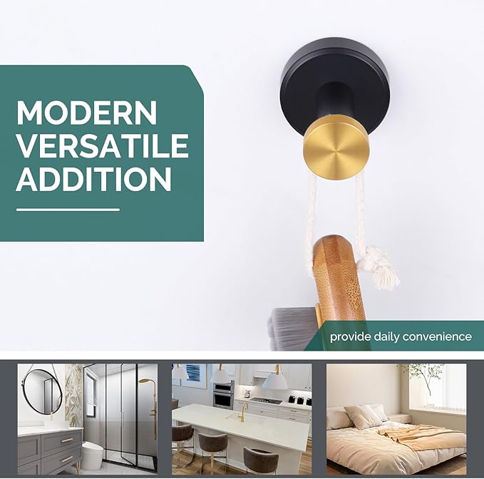 Angle Simple Towel Hook Black & Gold, Stainless Steel Bathroom Hook for Wall, Round Robe Hook, Hand Towel Holder