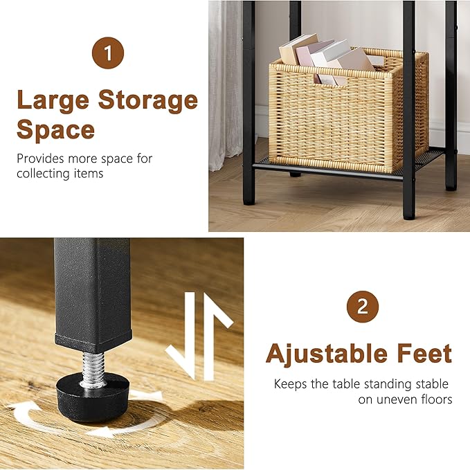 Hoctieon 3 Tier End Table, Telephone Table, Narrow Side Table with Storage, Nightstand for Small Spaces, Metal Frame, For Living Room, Bedroom, Sofa Couch, Hall, Easy Assembly, Rustic Brown