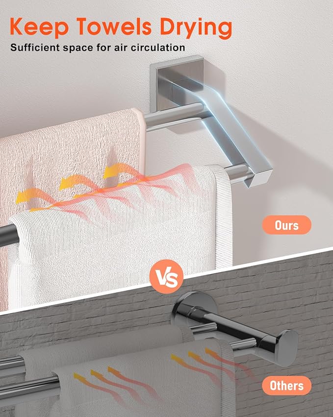- 【Practical Design and Large Space】Unique up and down double bars design, large storage space, perfect curvature to ensure that the towel can be easily hung on it, but also ensure the overall aesthetic and practical