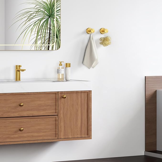 - AESTHETICS & FUNCTION COMBINED: simple geometric element with clean lines, deep rich gold tone revitalizes your bathroom, a graceful way to hold robe, towel, bag, umbrella or other daily stuff