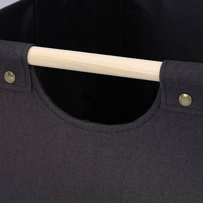 - Carrying Handles with Comfortable Grip: round wooden stick handles make the linen fabric storage baskets easy for you to carry room to room or trunk to hotels.