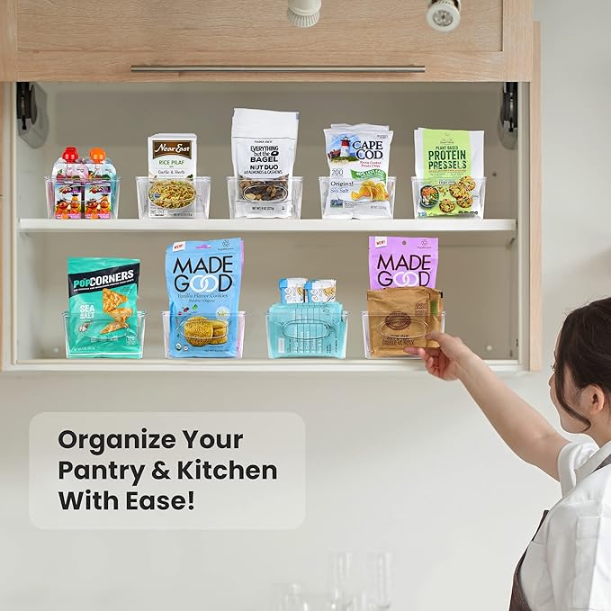 - Clear & Space-Saving: The transparent design allows you to quickly see contents while keeping food packets, granola bars, and protein bars neatly stored.