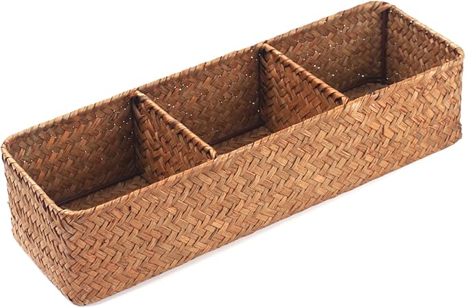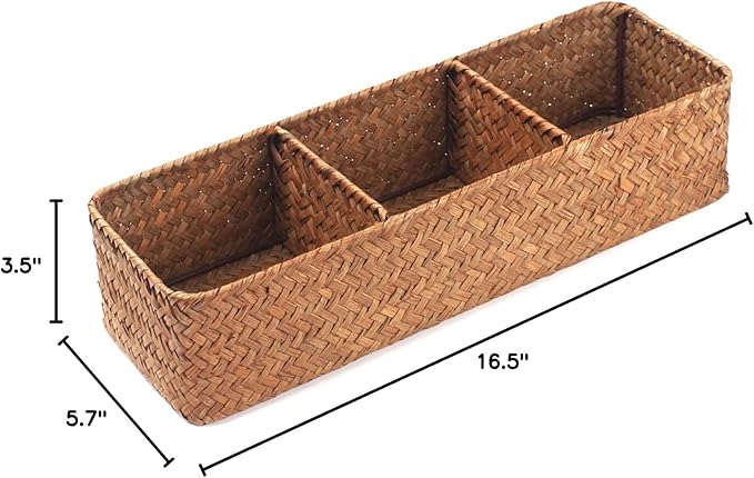 DOKOT Seagrass Toilet Tank Basket with 3 Section, Bathroom Toilet Paper Storage Baskets for Organizing (Natural)