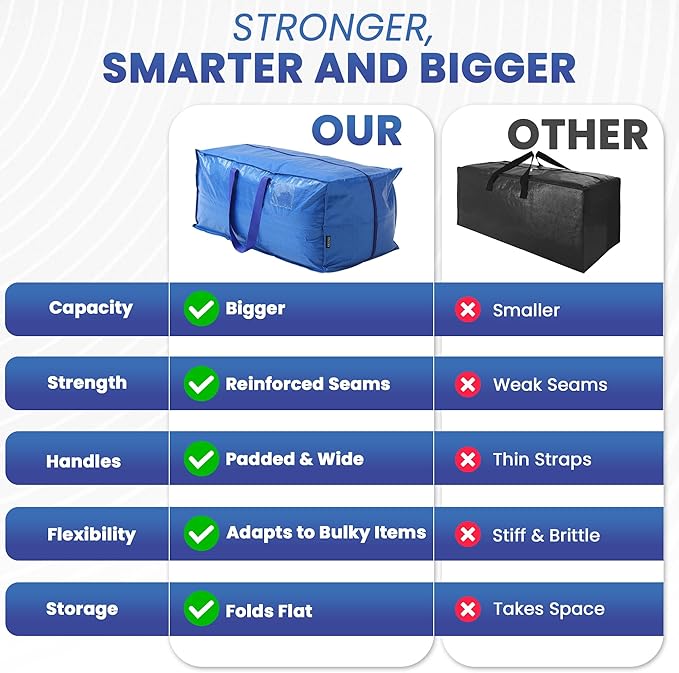 - Space-Saving Foldable Storage Bags: These moving bags with handles make ideal blanket storage bags and are also ideal for sheet storage, bedding storage, book and toys storage. Fold them flat when you no longer need them, to save precious storage space.