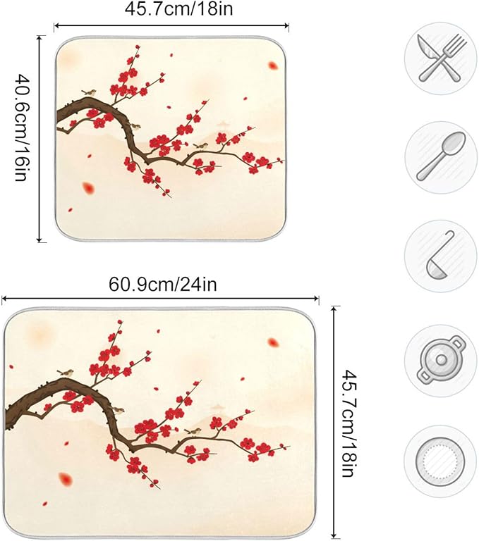 Absorbent Dish Dying Mat XL Oriental Style Painting Kitchen Counter Mat Protector,Reversible,Extra Large 24 x 18 Inches
