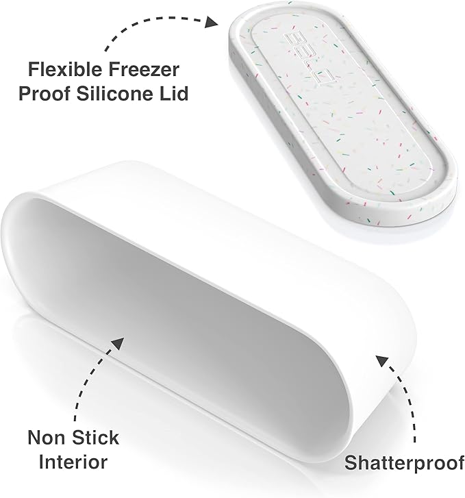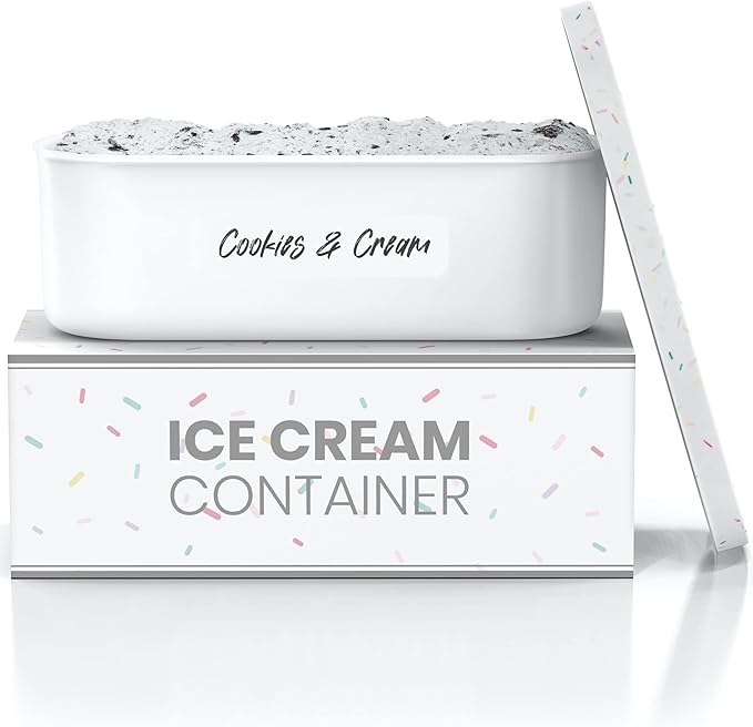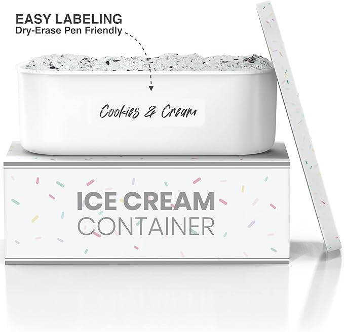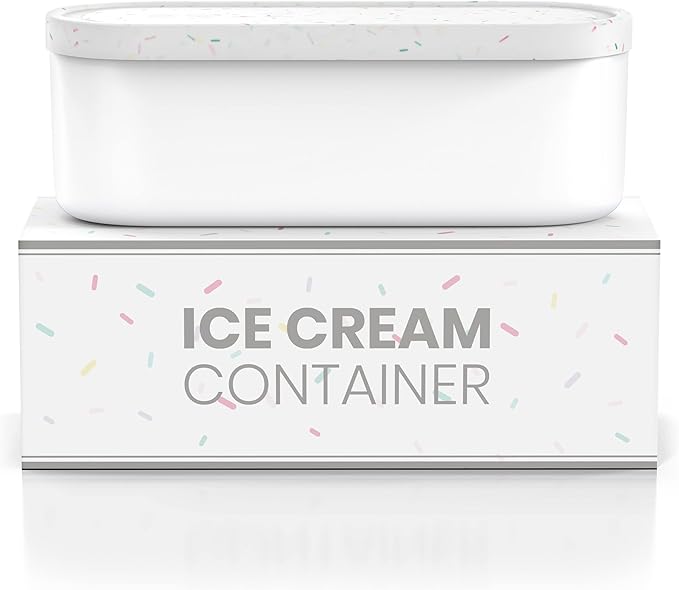 BALCI,Ice Cream Container,2 Quart,Perfect Reusable Freezer Storage for Homemade Ice Cream Tubs for Sorbet, Frozen Yogurt and Gelato!,Flexible Silicone Lids, Long Scoop, Stackable,White with Sprinkles