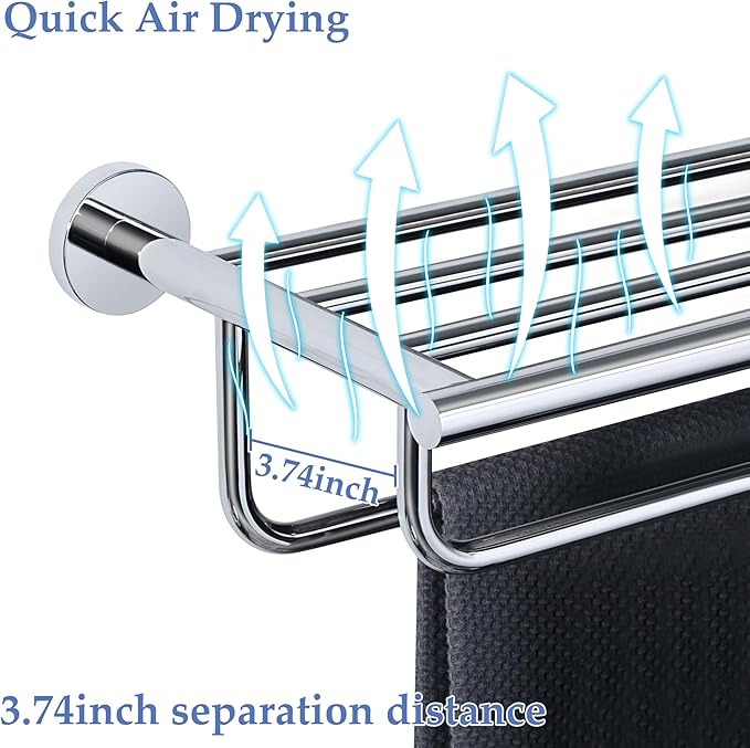 Alise 24-Inch Bathroom Lavatory Towel Rack Towel Shelf with 2 Towel Bars Wall Mount Towel Holder,GYT7060-C SUS 304 Stainless Steel Polished Chrome