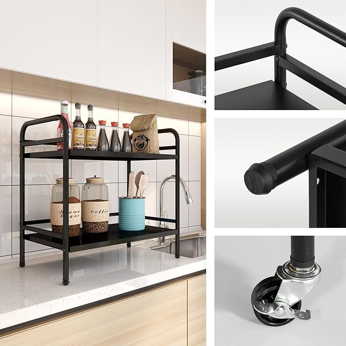 - [Multifunctional Storage] This versatile product doubles as both a cart and a bookshelf, with a sturdy metal structure and 2-tier open shelf design for extra storage.
