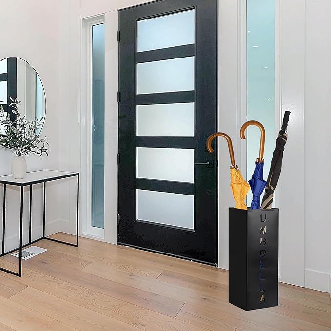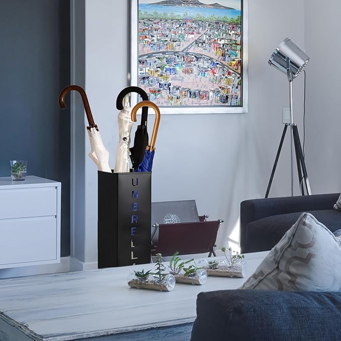 - Our black square umbrella stand can be used as wrapping paper holder, canes and walk sticks holder, compliment kinds of entryway decor, great for home, office, hotel, supermarkets and more occasions.