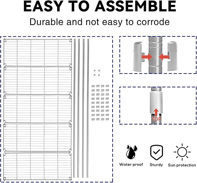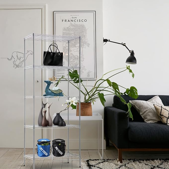 5-Tier Wire Shelving Unit Storage Shelves Metal Shelves 61''x24''x14'' Metal Shelving Unit Heavy Duty Wire Rack Shelving NSF for Home Kitchen Bathroom Garage Shelving (Chrome) NCF-MN5