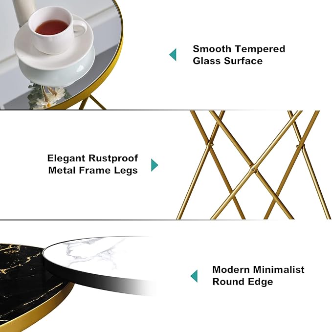 - 【Classic Modern Design】 Round end table has modern furniture aesthetics design with luxury gold metal frame and elegantly circular table top. With all stylish elements combined, this table will bring fashion and modern to your house.