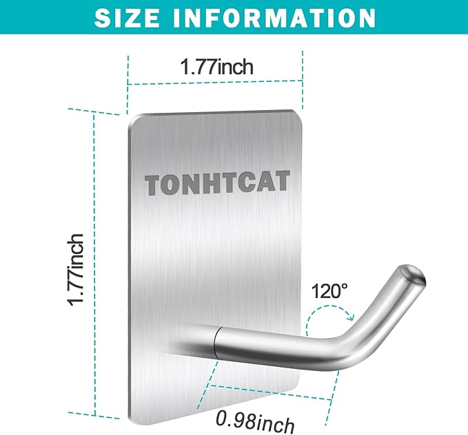 - HANG HEAVIER: With a 1.77*1.77 base area and high viscosity tape, this self-adhesive hook can bear up to 6lbs of items. No need to drill your wall or door.