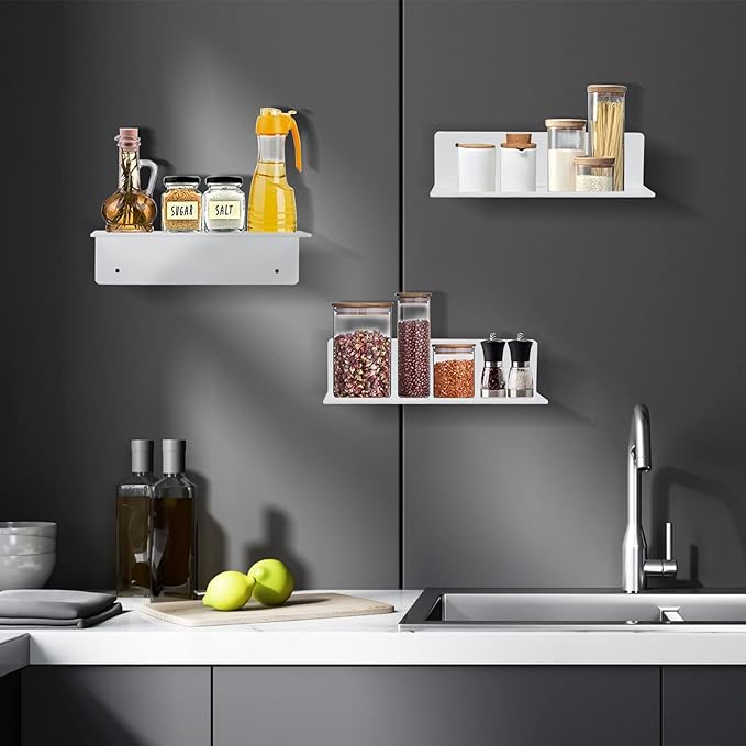 - 【Strong Stickness】: The stickiness of these adhesive floating shelves is 30 percent better than other shelves, better at keeping your stuff organized. Please attach the tape to the all back, press evenly to release bubbles, better load bearing.