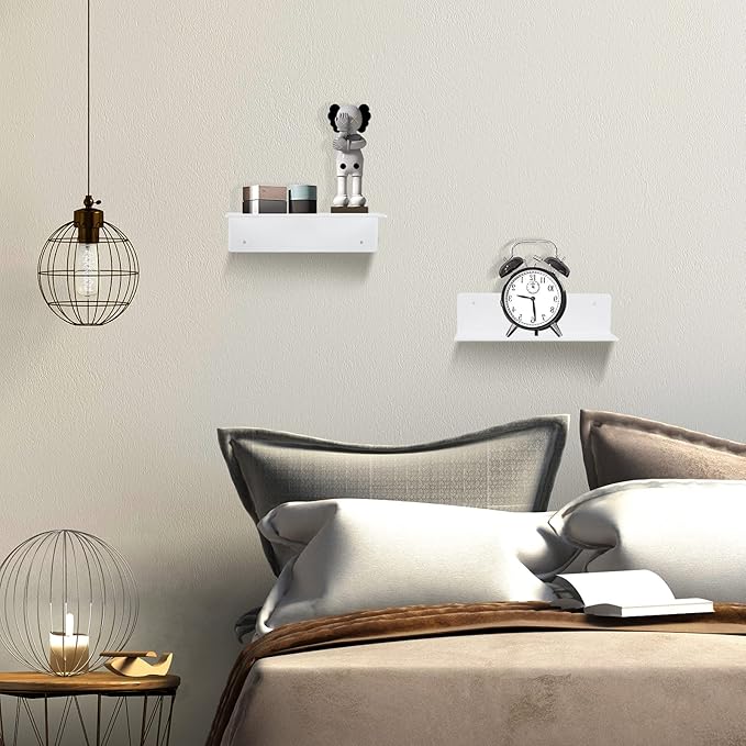- 【Rugged and durable】: The mini shelf for wall is made of new acrylic material, which does not fade, yellowing or corroded. The corners are polished and are very smooth.