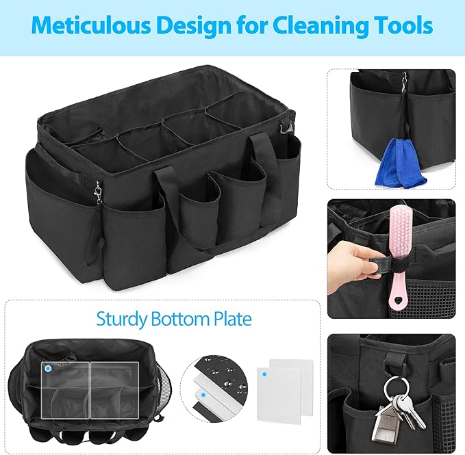 - Sufficient Storage Rooms: High-capacity main compartment is divided into 5 space by 4 partitions and attached with a small pocket; house cleaning kit like air fresheners, cleaning brushes, foams, towels, and rags can all be placed, easy to sort and access