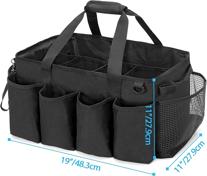 Extra-Large Cleaning Caddy, Organizer with Handles for Cleaning Tools & Products Storage, Large Capacity Tote Bag for Car, Home & Housekeeping Work, Black
