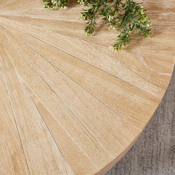 Gexpusm Round Wood Coffee Tables for Living Room, Farmhouse Circle Coffee Table, Rustic Mid Century Wooden Coffee Tables for Apartment, Easy Assembly (Only Coffee Table, 31.50" Dx31.50 Wx14.29 H)